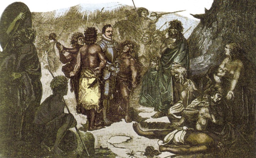 «Y aquí fue el gobernador preso por los indios, que como llevaba el caballo malherido y de aquel día fatigado, le tomaron los indios. Y con un yacanona que allí se halló habló a los indios, y les decía que no le matasen, que bastaba el daño que habían hecho a sus españoles. […] A esta sazón llegó un mal indio que se decía Teopolicán, que era señor de la parte de aquel pueblo, y dijo a los indios que qué hacían con el apo, que por qué no le mataban que «muerto ése que manda a los españoles, fácilmente mataremos a los que quedan». Y diole con una lanza de las que dicho tengo y lo mató.»